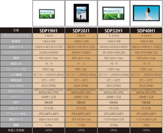 今、お持ちの写真、映像、音楽、チラシなど様々なファイルが簡単に再生できる、業務用大画面デジタルフォトフレームです。